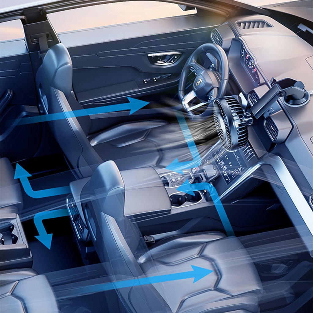 مروحة سيارة مدمجة – راحة وانتعاش أثناء القيادة تصميم أنيق وقوي، يُركب بسهولة على الزجاج الأمامي أو الطبلون بفضل قاعدة شفط قوية. دوران 360° لتوجيه الهواء حسب الحاجة. صامت وفعّال، يوفر تهوية لطيفة دون إزعاج. يعمل عبر USB – متوافق مع منافذ السيارة. صغير الحجم لا يعيق الرؤية – مثالي لأيام الصيف الحارة.